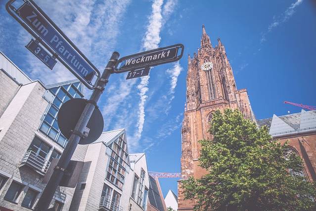 美茵河畔的法兰克福本是一座历史悠久的名城,是历代帝王加冕的风水宝地,也是著名诗人歌德的故乡,但不幸的是,在二战期间法兰克福遭到了大面积损毁,现在保留下来的已寥寥无几。近代的法兰克福已发展为世界的金融中心,欧元总部变坐落于此。同时,法兰克福车展、书展等等商业展会也均是世界最高规格的展览,所以说今天的法兰克福已从昔日的文化古都转变为了国际化商业大都市。对于游览法兰克福的路线,我有一个很推荐的方案:从漂亮的中央火车站出发,往东穿过商铺、酒吧林立的kaiserstrabe大街,在小巧精致的罗马广场上停留片刻,欣赏一下这个最“法兰克福”的地方,然后继续向东便是历史悠久的法兰克福大教堂,再一路继续东行穿过漂亮的小街道来到现代化的欧元广场,领略一下金融中心的风采,从这里往南几步便是美茵河北岸,在河边散散步或在系满同心锁的铁桥旁停下喝杯饮料都好不惬意,最后回到kaiserstrabe大街附近找家地道的德式酒馆点上一盘应季的沙拉配上当地苹果酒,回味一下法兰克福的旧貌与新颜,美茵河畔的繁忙与悠闲,嗯,这才是欧洲的生活。