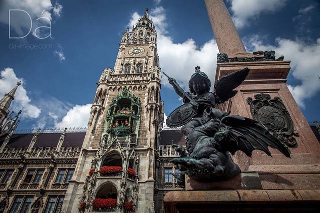 来到玛丽恩广场第一眼看到的一定是规模宏大、外形华丽优雅的慕尼黑地标性建筑,新市政厅。每时每刻都会有无数游人在广场上驻足用镜头记录着它的英姿,确实,新市政厅是一个让人百拍不厌的建筑,怎么拍都觉得无法诠释它的美。如果现在有人问我从哪个角度观赏市政厅最好,我最推荐的大概会是:坐在对面广场咖啡馆一边品着下午茶一边静静的欣赏,每逢下午5点钟楼上还会有真人大小的木偶戏上演,据说时间长达10分钟。可惜那天5点时我们还留恋在周围各式的教堂里,错过了这久负盛名的场景,算是一点遗憾吧。