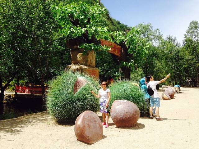 很不巧的是,天气又转因了,景区里的大喇叭也开始广播,马上就要有雷阵雨天气了,于是我们急匆匆的从长城下来,出了栗子园发现黑龙潭距离此处1.5km,没抗住老公的忽悠,还是向着黑龙潭的方向出发了。