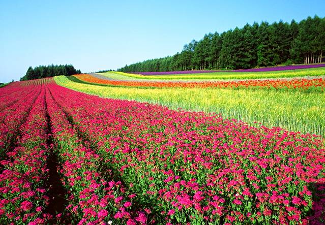 富田农场为北海道最早的花田之一。原仅栽种熏衣草的富田农场在主人的精心打理下渐渐地成为今日所见的彩虹花海。