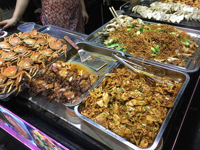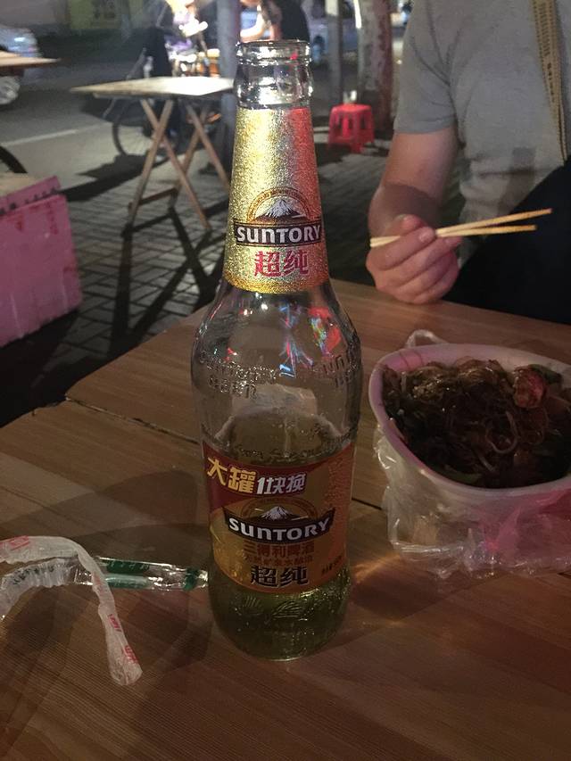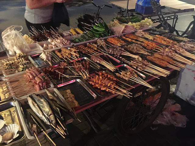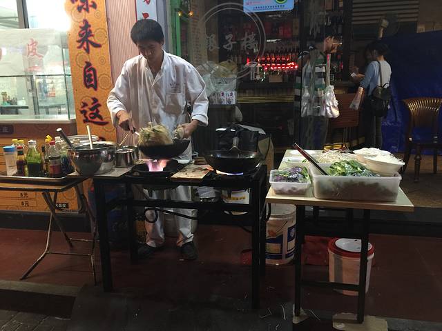 水果便宜又好,对面就有几家饭店,晚上10点以后老板会把锅灶搬出来炒菜,要了一份炒河粉就去宾馆楼下的大排挡了,老板是个东北人,味道不错,就是卫生嘛……路边小吃都这样,嘿嘿