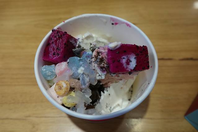 看人渐渐多了我们就从田子坊粗来了,偶然看到对面的自助冰激凌店(忘记名字啦,也木有照相),很卡哇伊,就进去了,冰激自己挤,好多口味,按斤称,很贵哦...不过味道特别好。