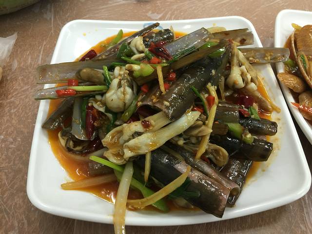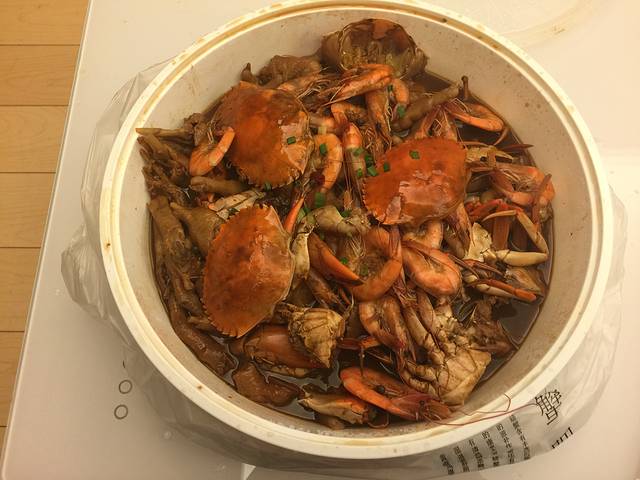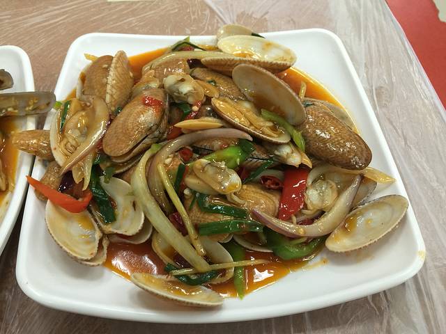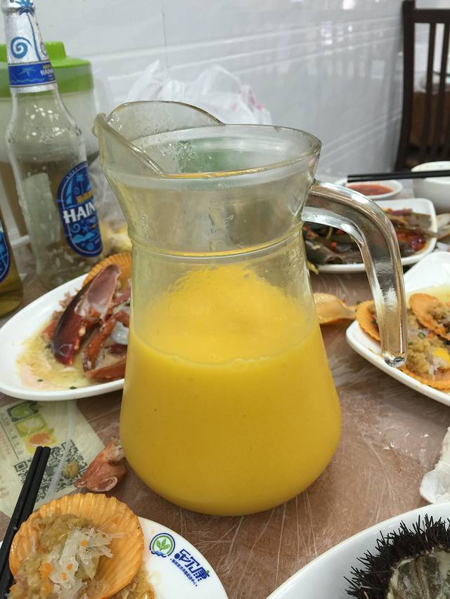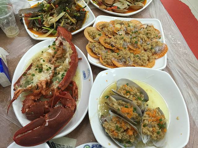 市场里买了新鲜的海鲜和水果,在小扇贝家加工,好吃哦……
