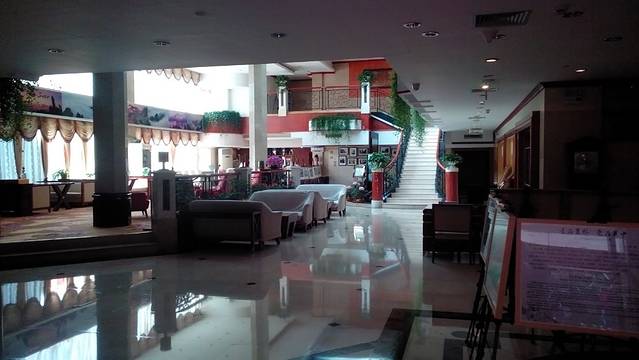 过北海宾馆往右走就是我网订预付的狮林大酒店, 住狮林大酒店4人同缘房260元,一床独立卫生间淋浴(热水无时间限制水压挺大,结果只住了两人运气好啊!),是订预付的,大厅里有wifi房里没,房里有烘衣器吹风机烧水壶,牙刷牙膏不提供的反正我自带的,洗发液沐浴露毛巾都有的,大厅里摆了很多摄影作品...