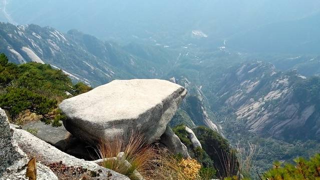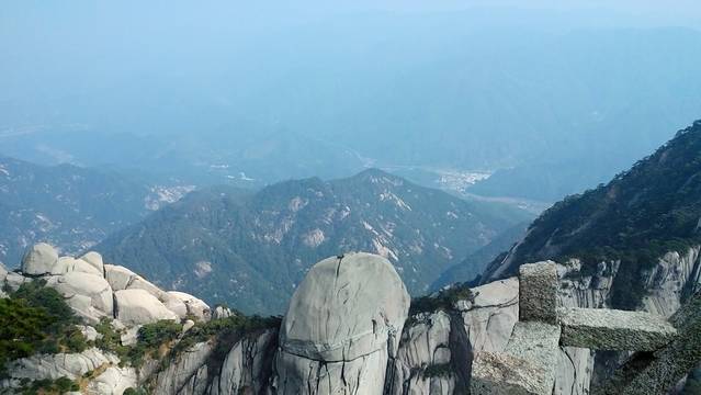 向始信峰方向走不远路右巨石后能远眺太平,天气正晴好能看的很远,我虽然带了望远镜但直接远望效果也已很好。