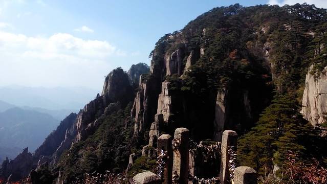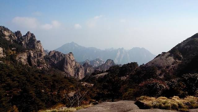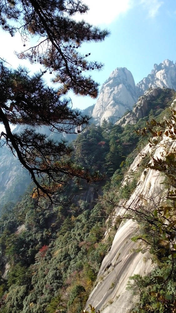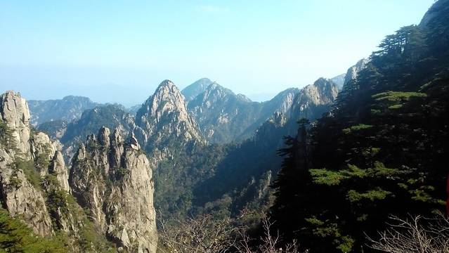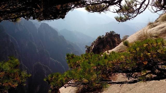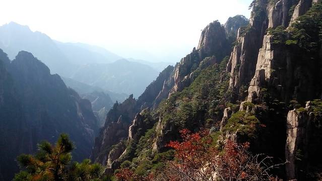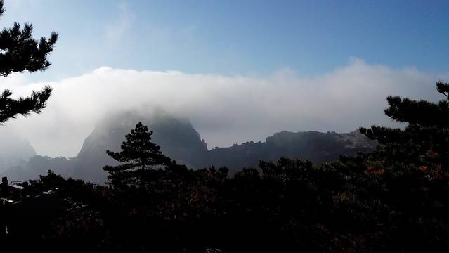 秦时称黟山,唐玄宗天宝六年(公元747年)因传说黄帝在此修道求仙改称黄山,方圆154平方公里,山体为粗粒花岗岩常发育为直立的节理,李四光认为主要是第四纪冰川作用形成,有的专家认为山体高度不够,2500至3000米才会有冰川...黄山有四绝:奇松,怪石,云海,温泉,其中云海在深秋和冬季或是雨后的短暂时间里可能会出现,而壮观程度要看运气和你与黄山的缘分了...