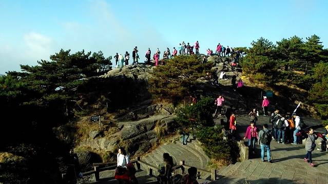 狮林大酒店5:40出发>>6:17清凉台后野巨石观日出>>返回狮林大酒店退房>>观石亭>>皮蓬沟>>8:30光明顶观天都莲花鳌鱼峰8:45出发下山>>(白云宾馆)天海美食广场9:25出发>>海心亭>>鳌鱼峰>>鳌鱼洞>>百步云梯>>莲花亭>>玉屏楼11:19分中饭肉粽>>迎客松>>蓬莱三岛>>12:10登天都峰>>13:05鲫鱼背仙桃石及顶峰>>13:25下山>>15:09回到主路>>半山寺>>立马桥>>17:00慈光阁17:28发车>>黄山温泉泡汤吃晚饭28元面21点班车>>汤口阿拉入住