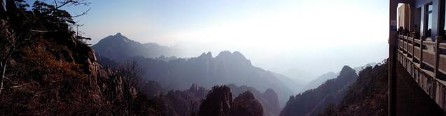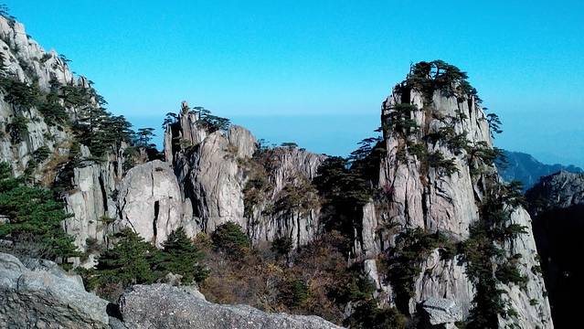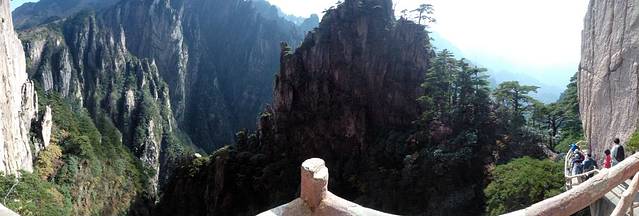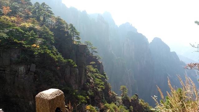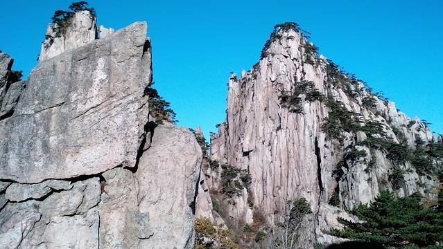 再往前点就快到玉屏了,玉屛楼旧址是明万历始建的文殊院,徐霞客二来黄山时登临感叹:“左天都,右莲花,背倚玉屛风,两峰秀色,俱可手擎,四顾奇峰错列,众壑纵横,真黄山绝胜处!”