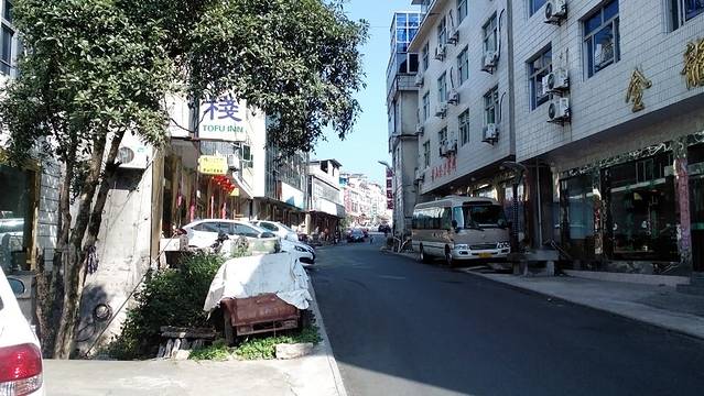 快到时车主开始演说黄山莲花峰华东第一高(乱讲!)山上注意事项如别乱刻到此一游禁止在吸烟区外吸烟汤口街上饭店吃几个菜至少五百因为房租要60万一年街上品牌超市都是山寨的东西普遍贵点这儿没出租叫车50起步等等,还一排排问旅客有没订好酒店,如还没订就住他这客运公司宾馆回程车票没买的可以直接在他这订可改时间...我问他答汽车站不停,听我说订在阿拉说让他们开车来接,唾沫星子飞了十几分钟16:11车终于停在一家宾馆前到达终点。