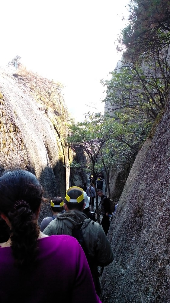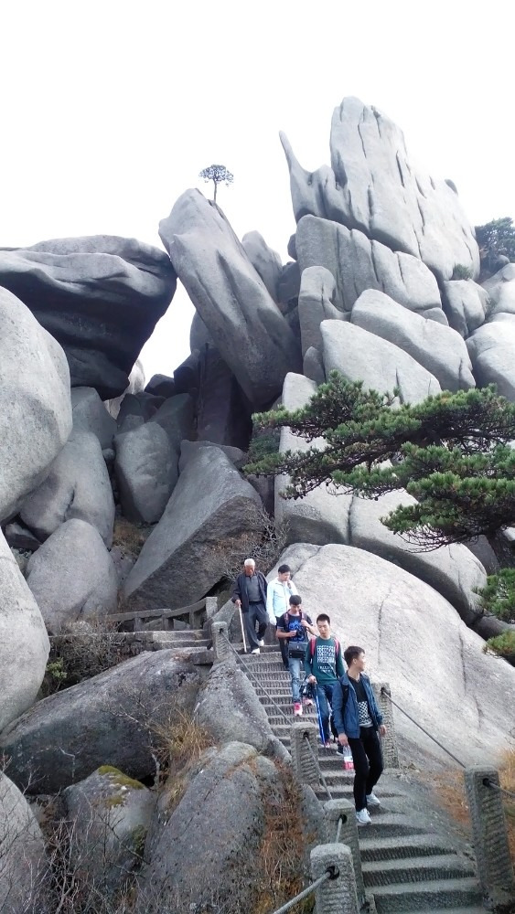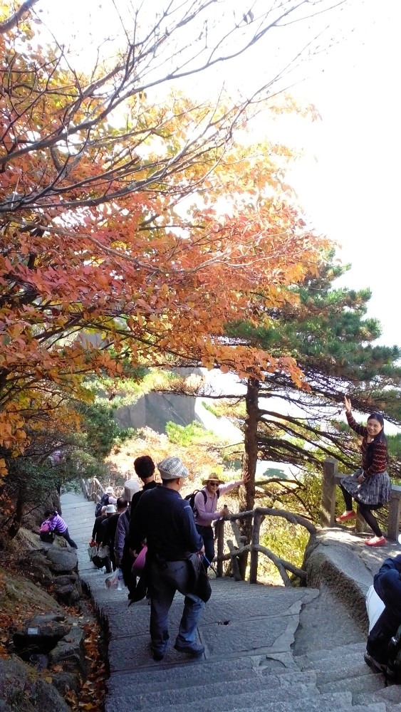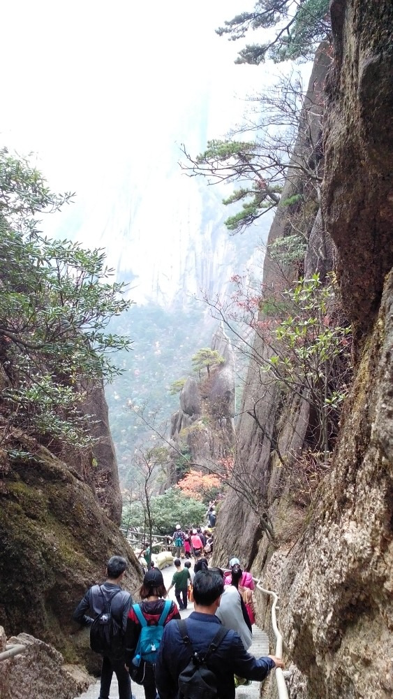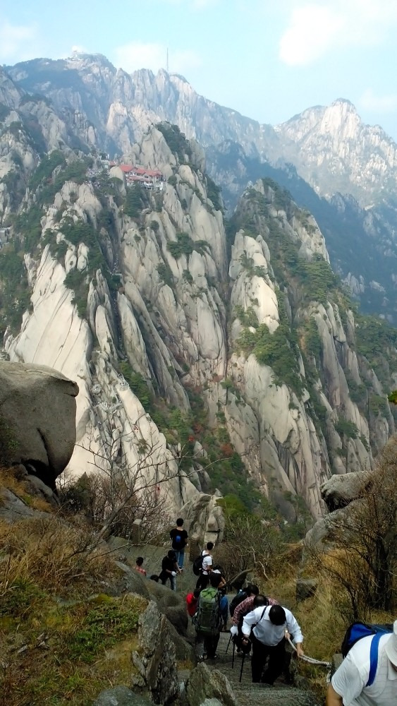 黄山上岔路口都有指示牌的看清楚方向就行(有的位置不合理蛮妖的,比如西海大峡谷里排云亭下到二环上岔路口标志牌在左边亭子里边上),山上景点直接听络绎不绝的团队导游讲挺有趣的,有的你自己不一定看得出奥妙之处...最累人的是爬天都峰尤其前山这又陡又窄上下山要三个小时(关键是之前你已经不可避免的爬了较长时间山路了), 西海现在反正可坐地轨不算累的,排云亭下一个小时多点,北海宾馆经观石亭到光明顶这条石阶路早晨有鸟儿相伴好好享受...