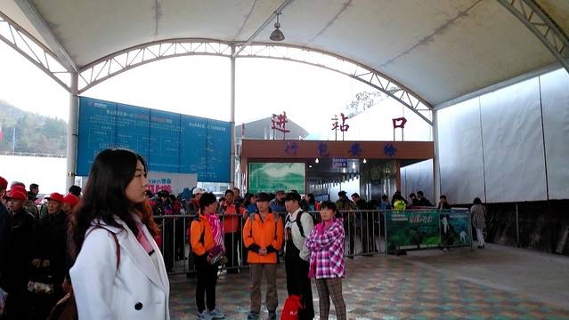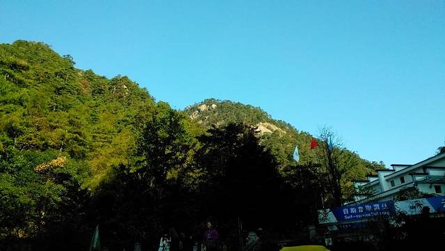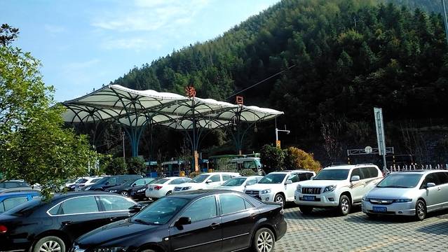 随着下山大军17点终于抵达慈光阁,到平地啦!买了8元去温泉票,一个男的叫我帮忙带买2张回汤口票,没什么礼貌算了帮就帮吧,17:10停车场栏杆那排队等车,17:28上车出发,虽然排队人流很长,但上山接客的新国线大巴源源不断的上来,我看售票处写着末班是按季节17:30-18:30,还有夜间叫车电话,我去黄山前曾电话问过黄山风景区官方咨询电话,说原则上车是把下山游客送完为止...