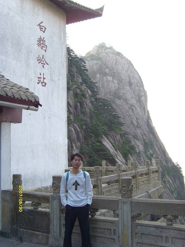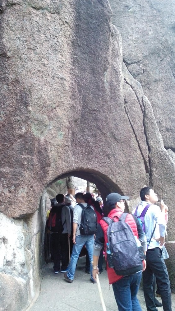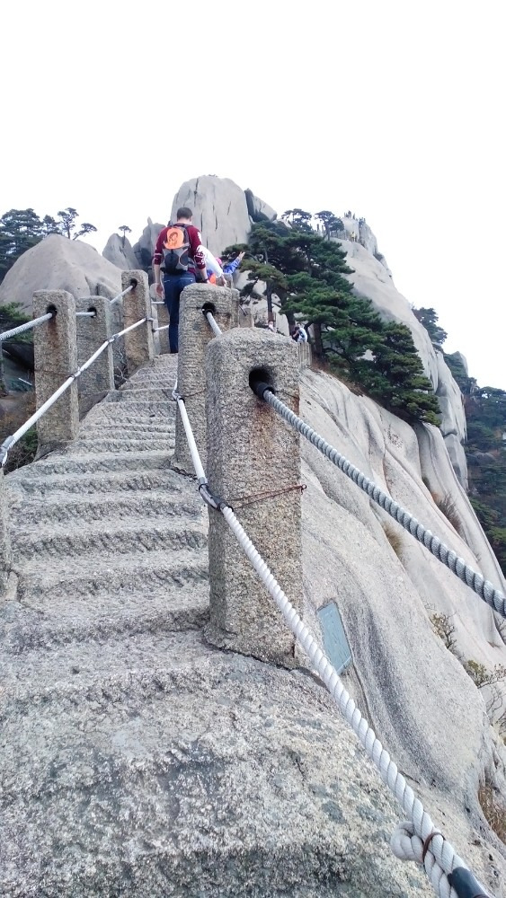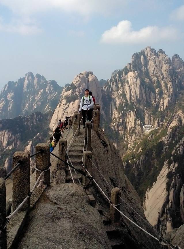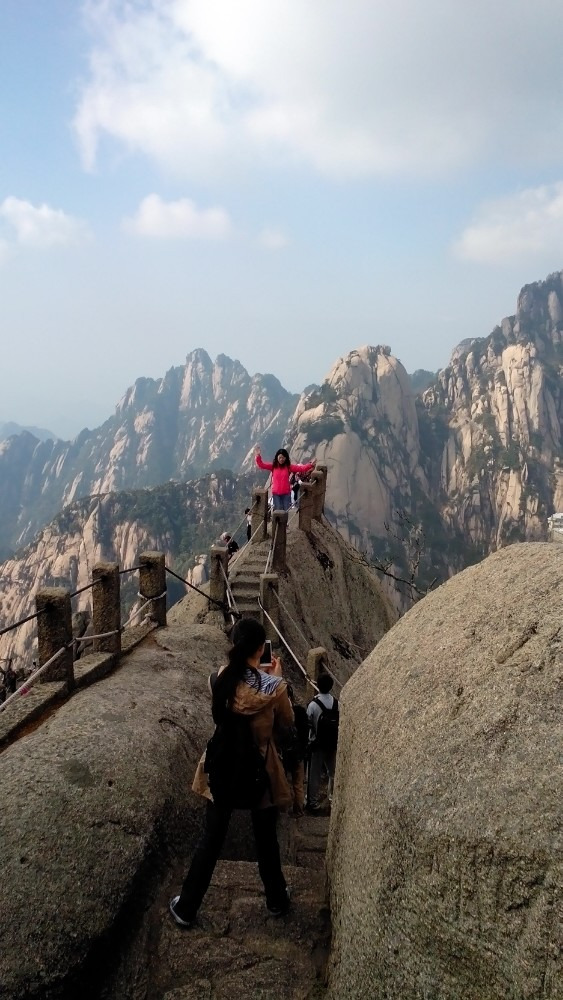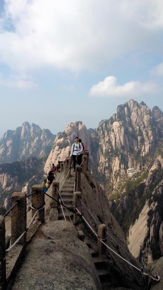 哥只能找别人帮忙给自己整一张!如临飞仙啊,有点薄云雾就更完美了!拍的人应该站再低点右面一点角度拍效果会更好,也不苛求了随便点吧...当年徐霞客过鲫鱼背可是没旁边这拦索石柱的啊!强啊!!