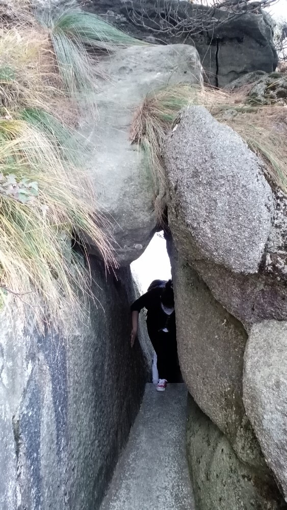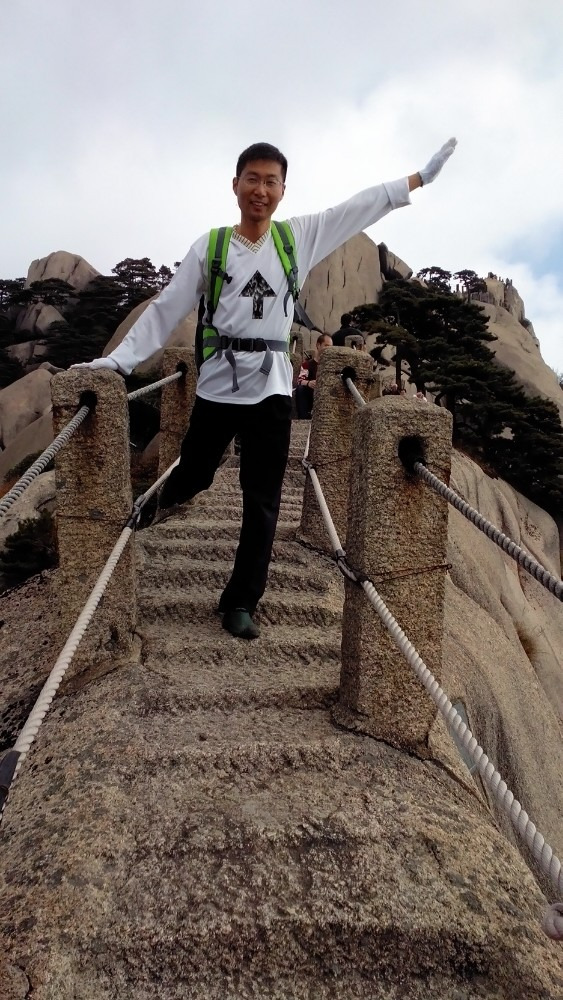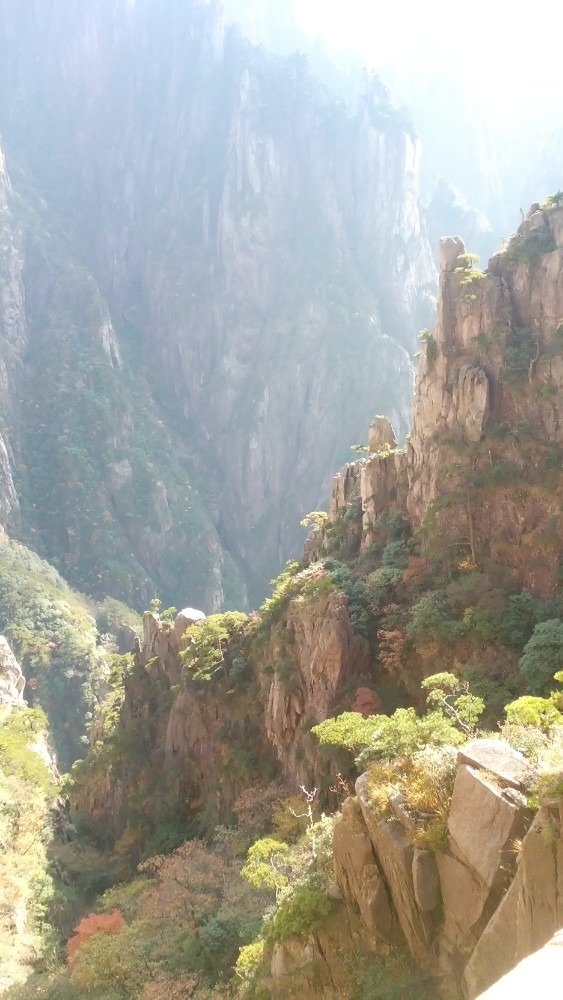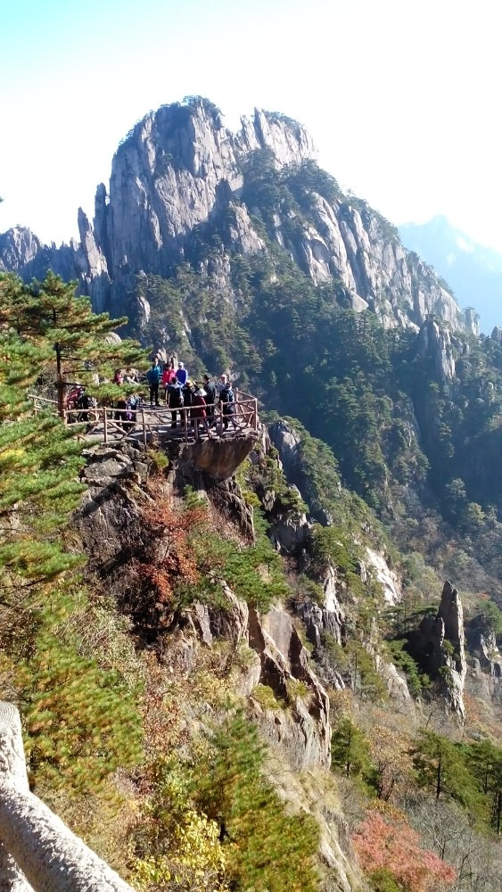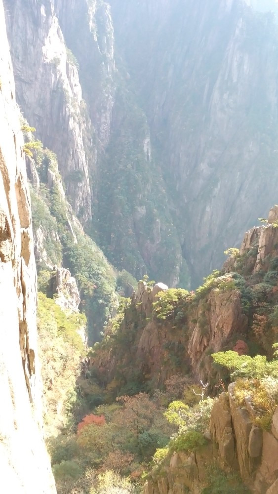 哥只能找别人帮忙给自己整一张!如临飞仙啊,有点薄云雾就更完美了!拍的人应该站再低点右面一点角度拍效果会更好,也不苛求了随便点吧...当年徐霞客过鲫鱼背可是没旁边这拦索石柱的啊!强啊!!