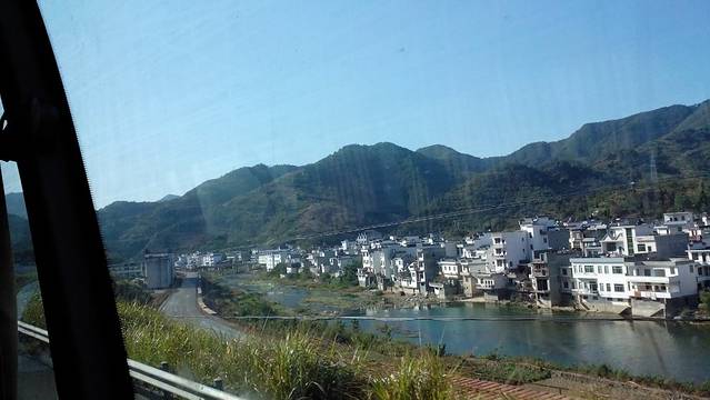 12:15继续行车,14:28司机停车让去黄山风景区的换到后面杭州去黄山风景区的车,他的车去屯溪了(黄山市区),10分钟后杭州车来了去屯溪的下来上上海来车,上杭州车后也是坐满的,是从歙县去黄山风景区(汤口)。
