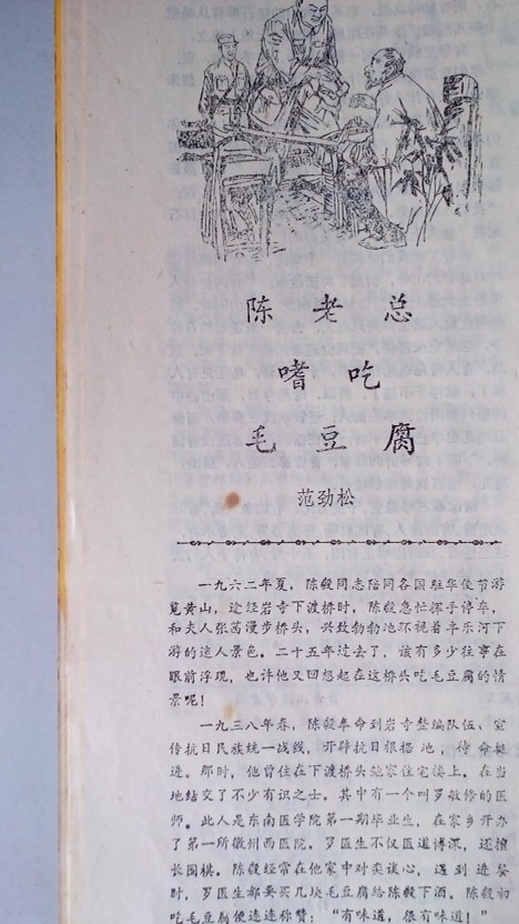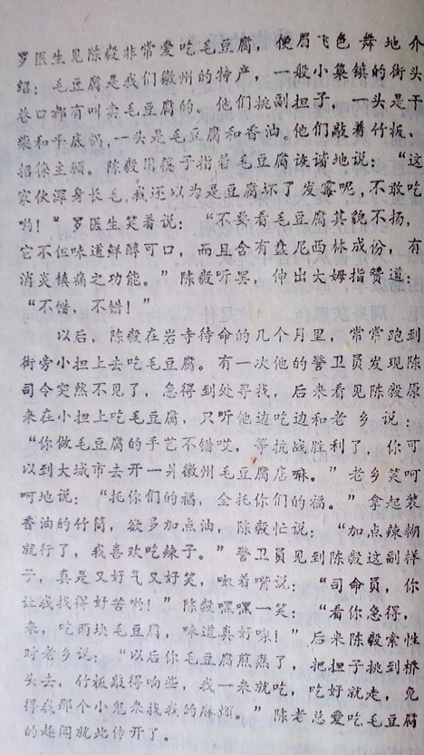 毛豆腐上的白毛看着实在恐怖,让人第一感觉想到白毛女(不知所云的去补农村迫害历史课),白毛是通过人工发酵使豆腐植物蛋白转化为氨基酸增加鲜味,上面分布了些黑色孢子是成熟的标志,上次我在黄山市区(屯溪)吃的是油炸金黄色的(当地叫虎皮豆腐),我只敢吃下面没毛的也仅浅尝则止,另两位也是望毛生畏...
