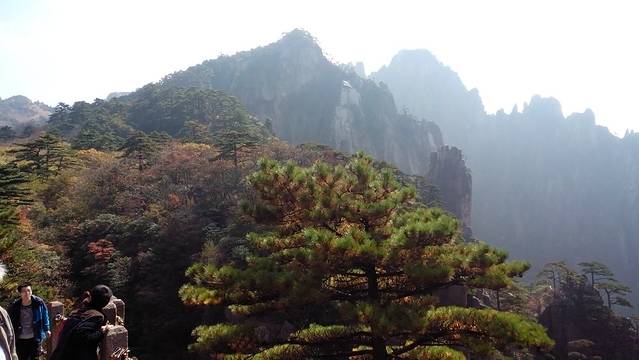 黄山新景松~~凤尾松,回头看效果更好,拍的人不少。