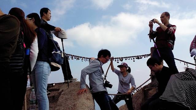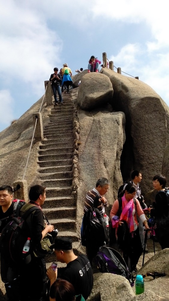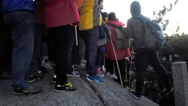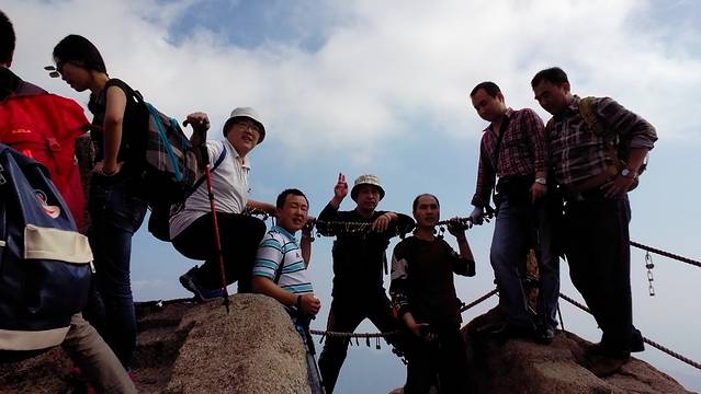 到峰顶倒是热闹的很周六天又好的关系吧,还不断有人上来,留影抢位的连续不断,这儿我就看看行了不留影了,休息了20分钟下山啦,路上艰辛啊一言难尽,大喇叭后来开始不断劝时间不够体力不行的别勉强上天都了!