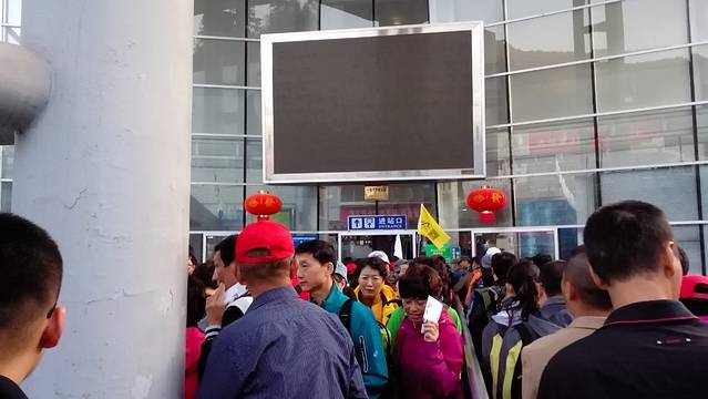 8:35从单位出来回家拿理好的背包,9:55分到的汽车南站,一号线地铁走出的这段路比三号线远不少,但车速快点线路也直点。10:27的车现场买的票( 周末节假日出行还是建议事先网购好车票) 148元终点黄山风景区(汤口),去屯溪(黄山市区)的两女孩子要和我24换位想坐一起,我问了她们的座位号21,22是隔过道,好吧,成人之美了,坐她们前的中年男游客和她们搭讪问也是去黄山玩的嘛被迅速回绝,我让她们在下车时提醒我下24座靠窗放的登山拐杖别忘,车上基本坐满的,我塞着耳机听喜马拉雅里的百家讲坛中的宋史,我这半边车太阳挺猛的窗帘遮着也有热感,背上都有点冒汗了...