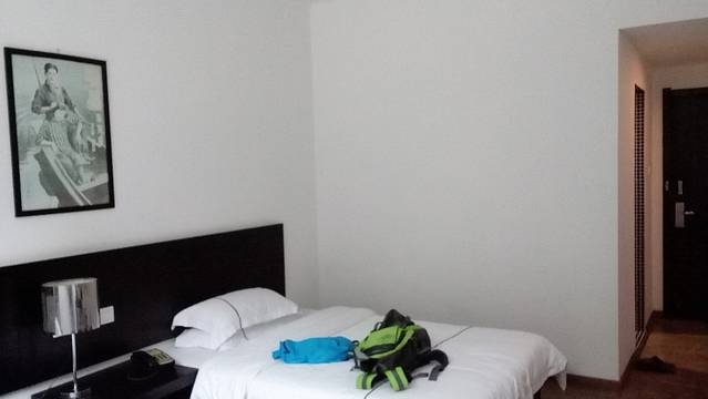 办完这些左手电梯上楼进房,里面看上去挺整洁的,酒店有wifi前台说密码八个八,在车上时就有点背汗先洗澡去一路风尘,水压水温挺舒服的,下楼也五点多了