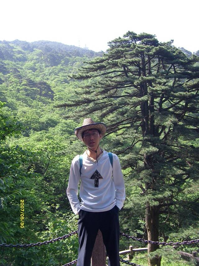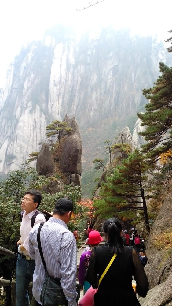 再往前就是连理松,大家怀着厮守到老的憧憬各个角度都在留念,在天愿作比翼鸟,在地愿为连理枝... 始信峰附近名松很多,导游提醒大家别站松树树干正前留影,站侧面一点,否则就像带着顶绿帽子,呵呵,说得在理啊...