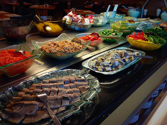 酒店的犹太自助早餐,椰枣、咸乳酪、鱼生片颇具特色!