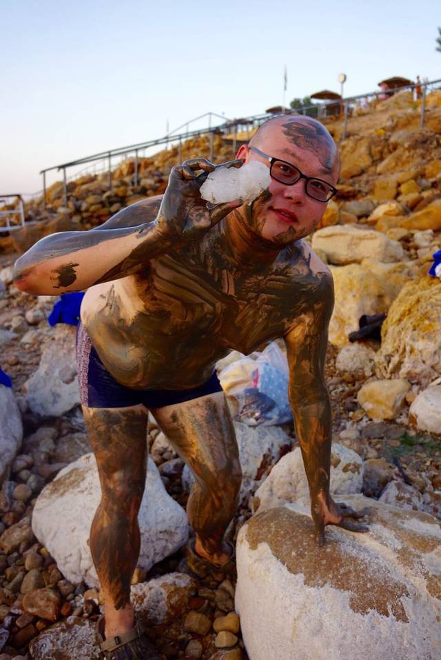 下午六点,终于可以出门去与死海亲密接触了,涂满死海泥可以起保护作用,皮肤光滑无比