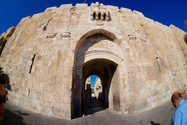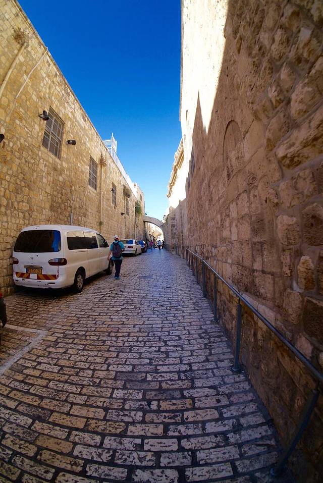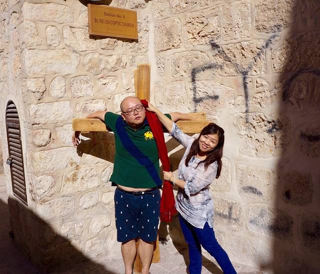 苦路:耶稣被处决前,背着沉重的十字架走过人生最生一程,中途有14 次停顿,人们把这14 次停顿称为苦路十四站。其中在三处被十字架压倒。这条路的起点位于当今耶路撒冷老城东北部,狮门内的一所中学里,然后沿着弯弯曲曲狭窄的老城街巷,最后到达圣墓大殿。