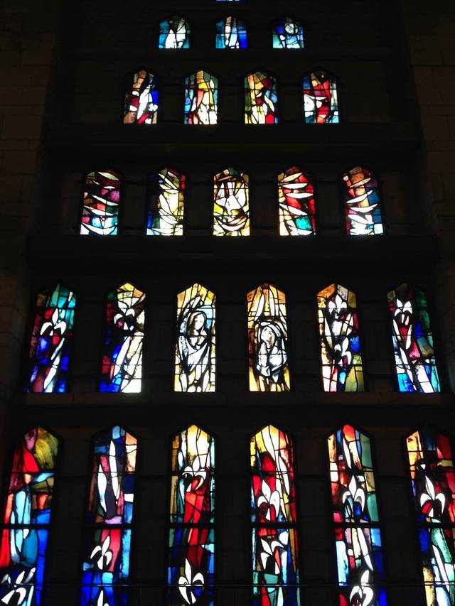教堂有八面墙,墙上开有八扇窗,窗上的彩色玻璃写满祝福。