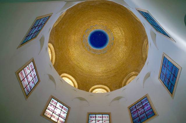 八福堂是70多年前在原有的一座拜占庭教堂上修建的,设计者是一位意大利人,他的设计理念围绕“八福”展开,用八角形暗喻八福。