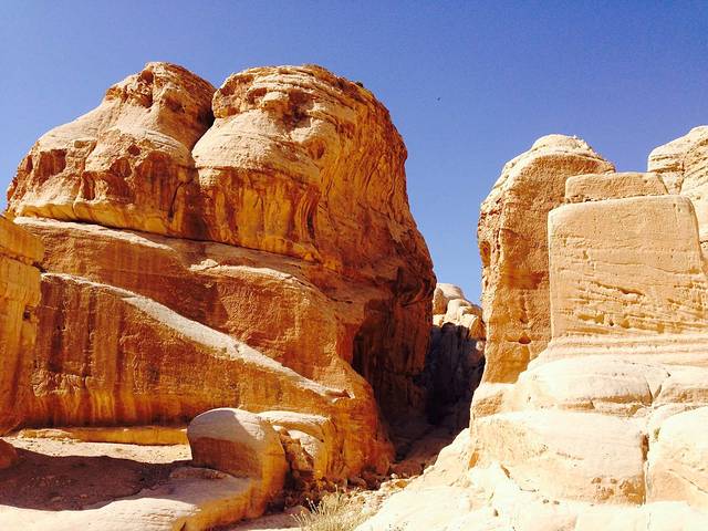 进入佩特拉古城要经过十来个这样的“一线天”,可谓“一夫当关万夫莫开”