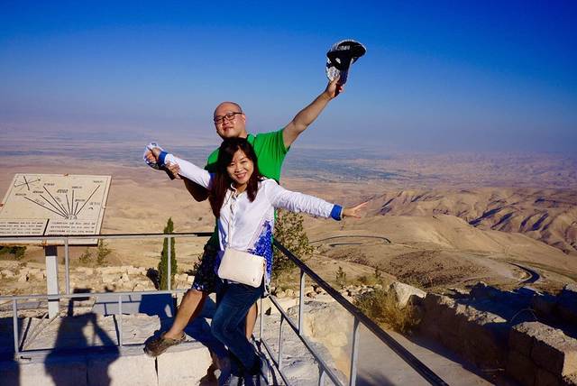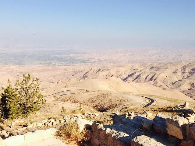 在山顶上,向西远望,隐约可见死海和约旦河西岸,据说当年摩西率领以色列人从埃及来到尼泊山,以杖击石得到泉水,分给十二个犹太部族,使得犹太人在这沙漠之中得到泉水而挽救了生命。
