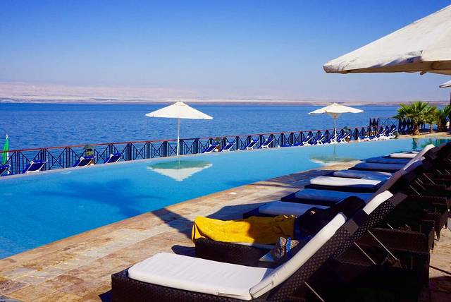 死海水最多泡半个钟,必须补充淡水,否则人会严重脱水,在泳池观日落也别有风情