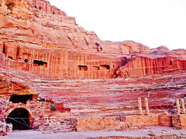 穿过哈兹纳赫殿堂前面的小谷,有古罗马剧场遗迹。剧场后面有一片开阔地,城市依四周山坡建筑而成,有寺院、宫殿、浴室和住宅等。这是一座隐没于峡谷中的城市,悬崖绝壁环抱,城墙天然而成。当然现在已经风化瓦解所剩无几了。