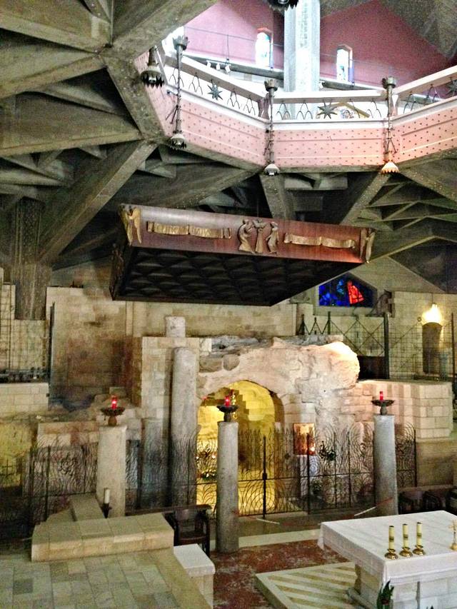教堂首层,传说这个位置就是玛利亚家原来居住的地方