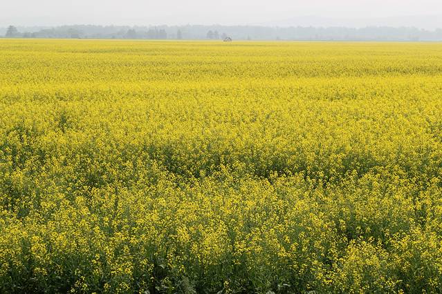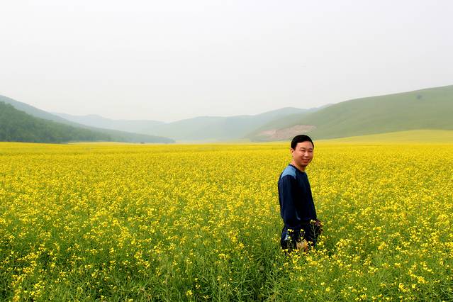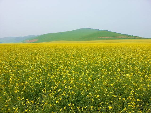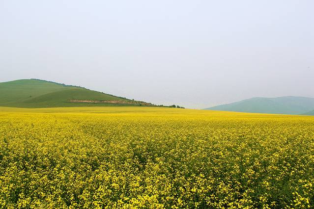 雾霾天的草原和油菜花海