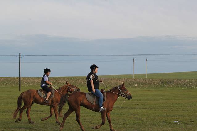 这次马场骑马是真正的草原骑马,不管大人孩子,呼呼啦啦给扶上马,有个带队一赶这就走了,很多家长担心孩子不会,什么不会,扶上马都会了,马场的老板也真可以,不过事实证明,孩子们一会时间都骑的象那么回事了。