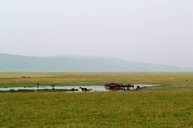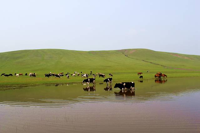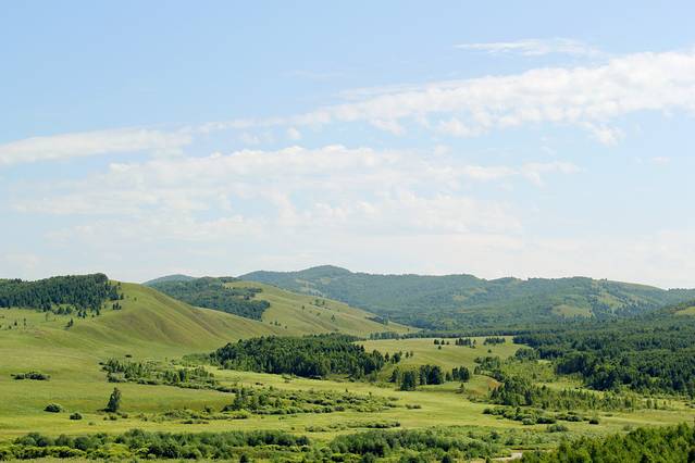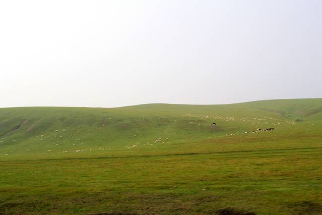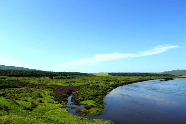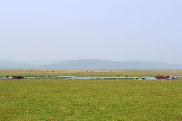 沿S203一直向阿尔山方向行驶,路况不错就是路有些窄。接近阿尔山时,草原开始变得漂亮,不过天气一直不敞亮,拍的照片也不漂亮,这种天气一直伴随的三天时间,像是雾霾天,当时很是失望,问当地人只是说天气不好,一直到第三天到根河时,才从一位当地司机师傅那里得知,在一周前俄罗斯边境地区森林着大火了,受西风的影响,呼伦贝尔地区成了这个样子,看来再美的地方,破坏起来也很快,好在后几天,天空也越来越清亮,终于欣赏了大草原的美。