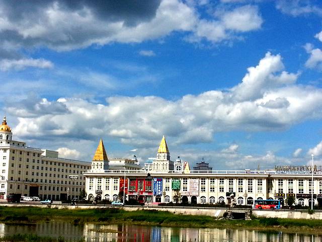 从露台看出去中俄界河就在旁边