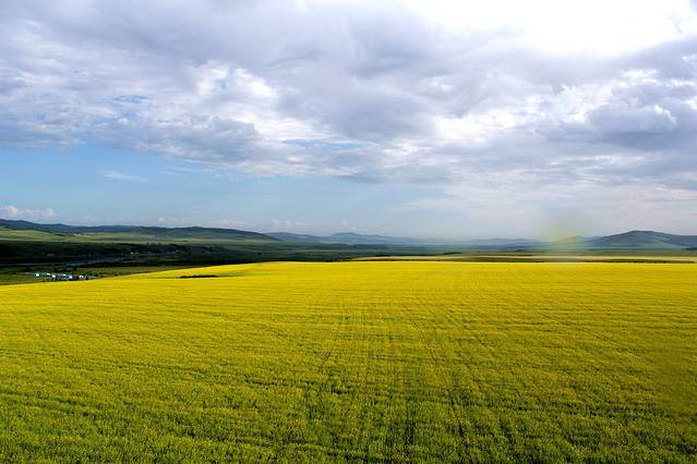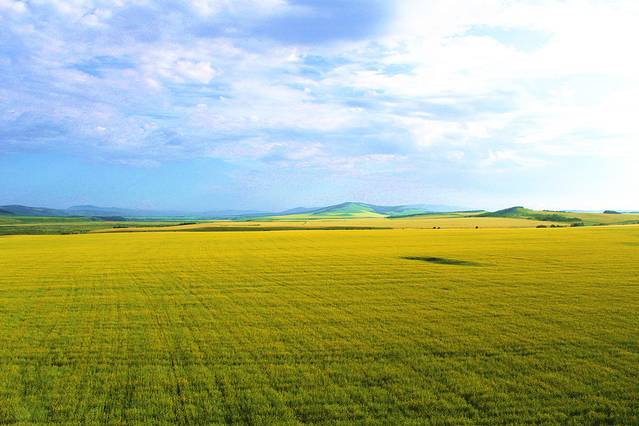 好天气下的草原与油菜花海