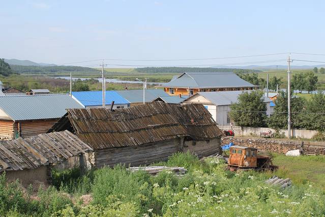 从室韦到黑山头,两条路,一条的从恩和,额尔古纳到黑山头,另一条从边境公路经九卡-七卡-六卡-五卡-黑山头,因为边境路难走,特别是五卡-黑山头,通过一块湿地,只要一下雨,就要断路,因为眼看到黑山头了,如果折返要多走几百公里道路,很多车辆冒险过水,打住了很多车辆。这次听当地司机说五卡水仍然很大,听说景色漂亮,不试一下又不甘心,于是决定先走九卡,七卡,然后问从六卡方向来的车辆,如果能过最好,不能过从七卡再转向恩和。运气还不错,顺利通过边境公路到达黑山头。