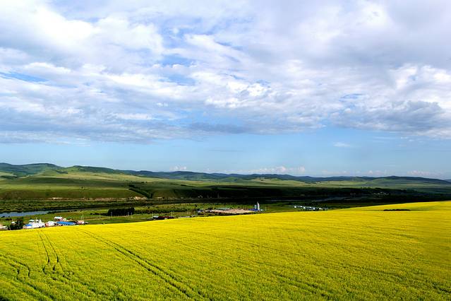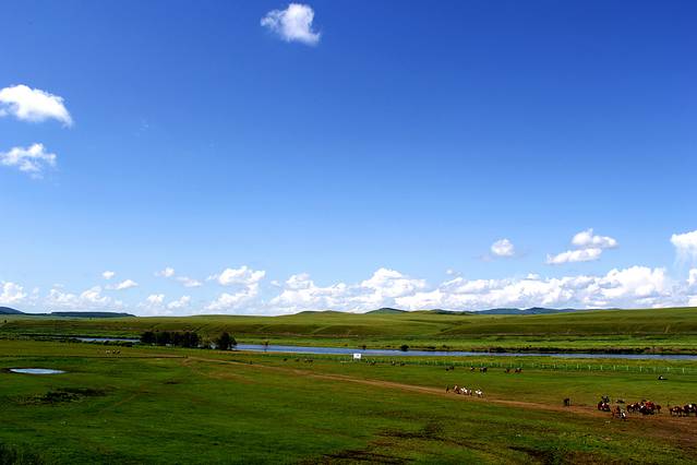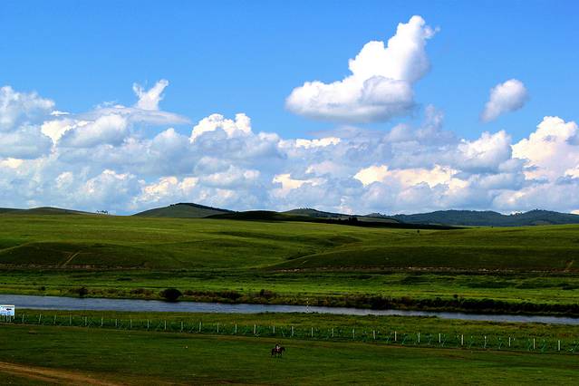 这里,有美味的羊肉,有香醇的奶茶,有一望无际的大草原,有漫山遍野的油菜花,有豪放豁达的草原民族,有引人无限遐想的蓝天白云,有千回万转的静静的河流。草原的美、河流的静、天空的蓝、牛羊的悠然自得,牧人的策马奔腾,一幅幅画卷在大脑中定格,这就是呼伦贝尔,你无时无刻不感受到她的美