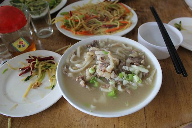 走到一个叫苏木的小村,我们重新从草原小道上S201,在小村的小饭店吃到了原汁原味的牛羊肉,牛肉面那个实在啊,可以叫牛肉拌面,味道很好!
