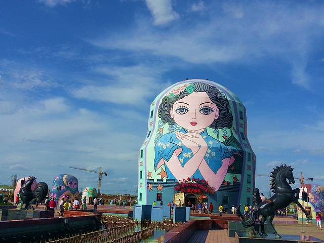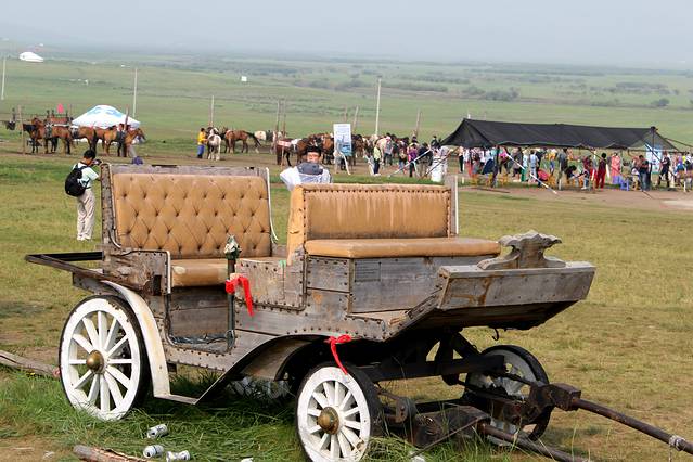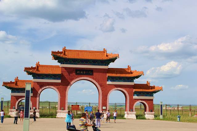 从海拉尔向北走S201,首先到达尔吉林寺,此处地势较高,网友介绍适合看草原和拍照,因为天气还没有好转,看不出去,没有上去。大概向北走10公里左右,从S201向右有一条公路到金帐汗,金帐汗是人工景点,旁边还有一个人工景点,不过带有孩子的,孩子还是很感兴趣的