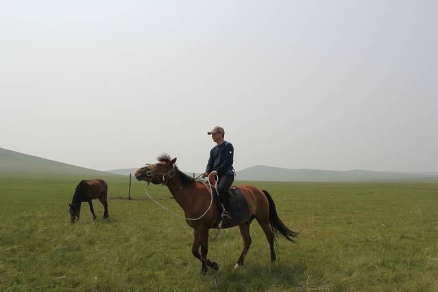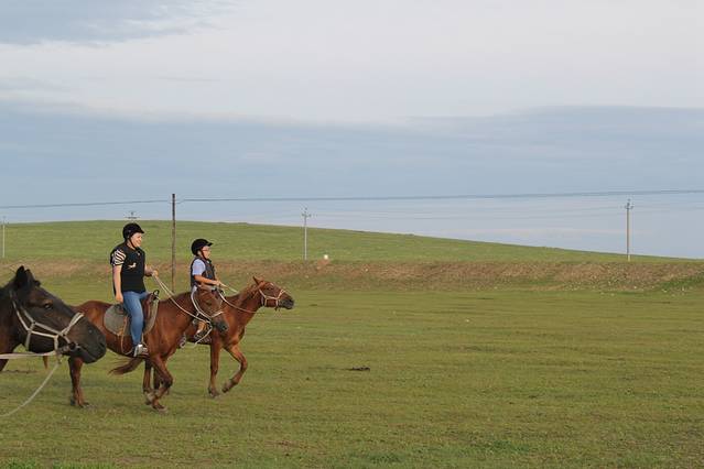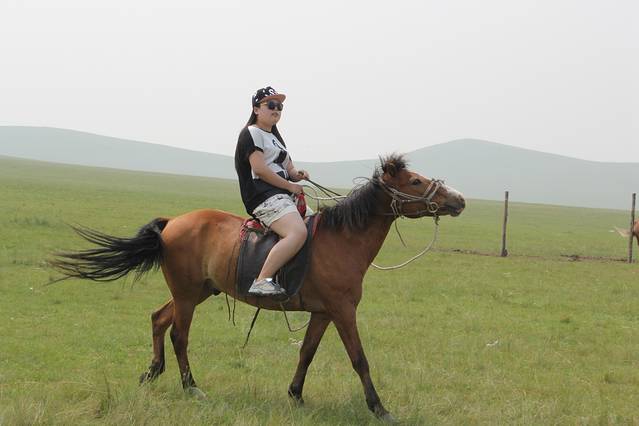 在草原上遇到一家牧民,人很朴实,给我们重新装上马鞍,在草原上骑着玩,最后只收100元,我们把好多零食留给她的孩子