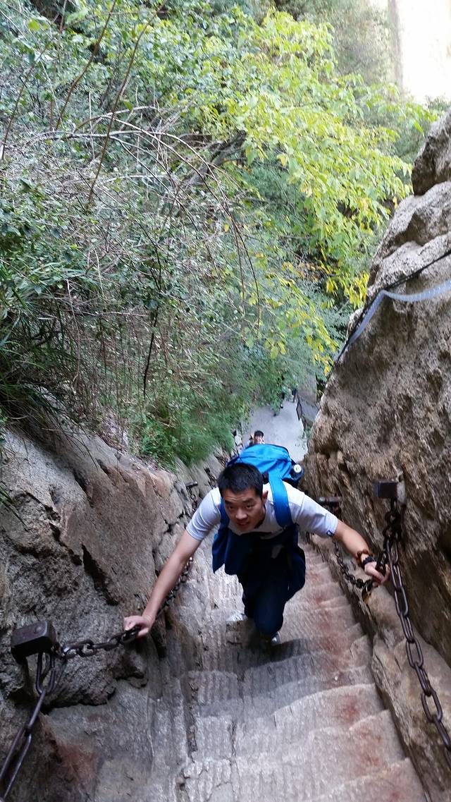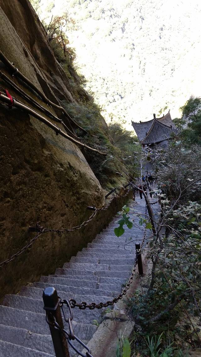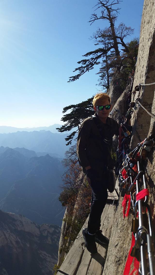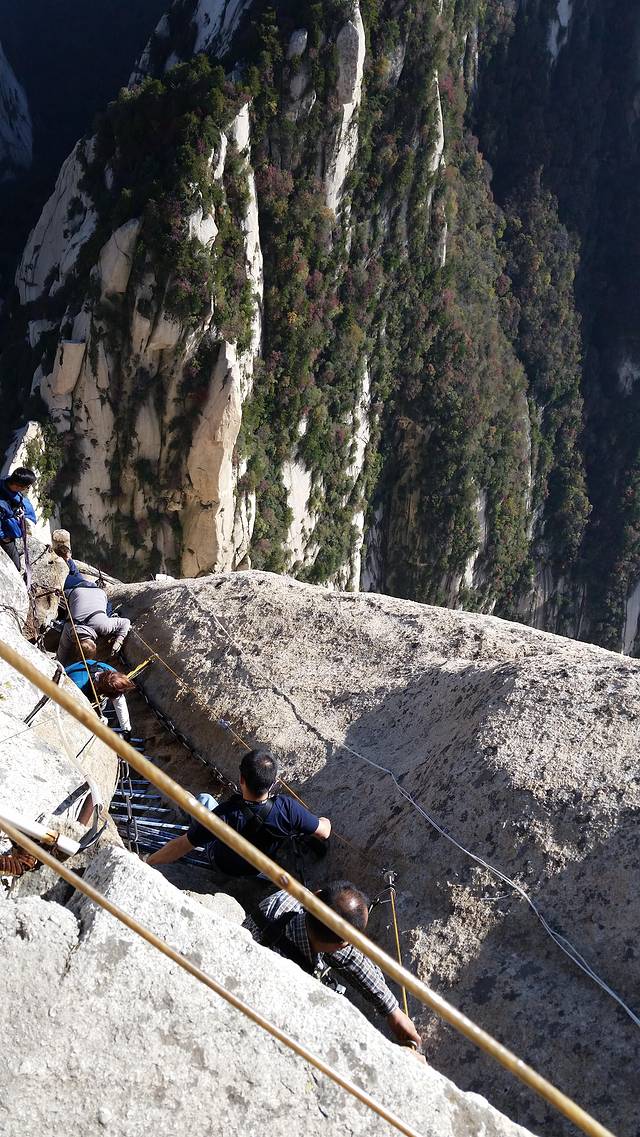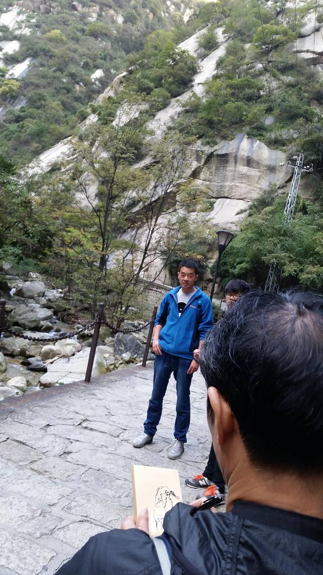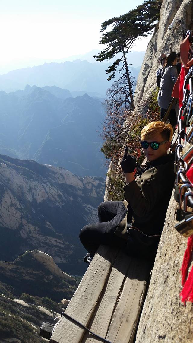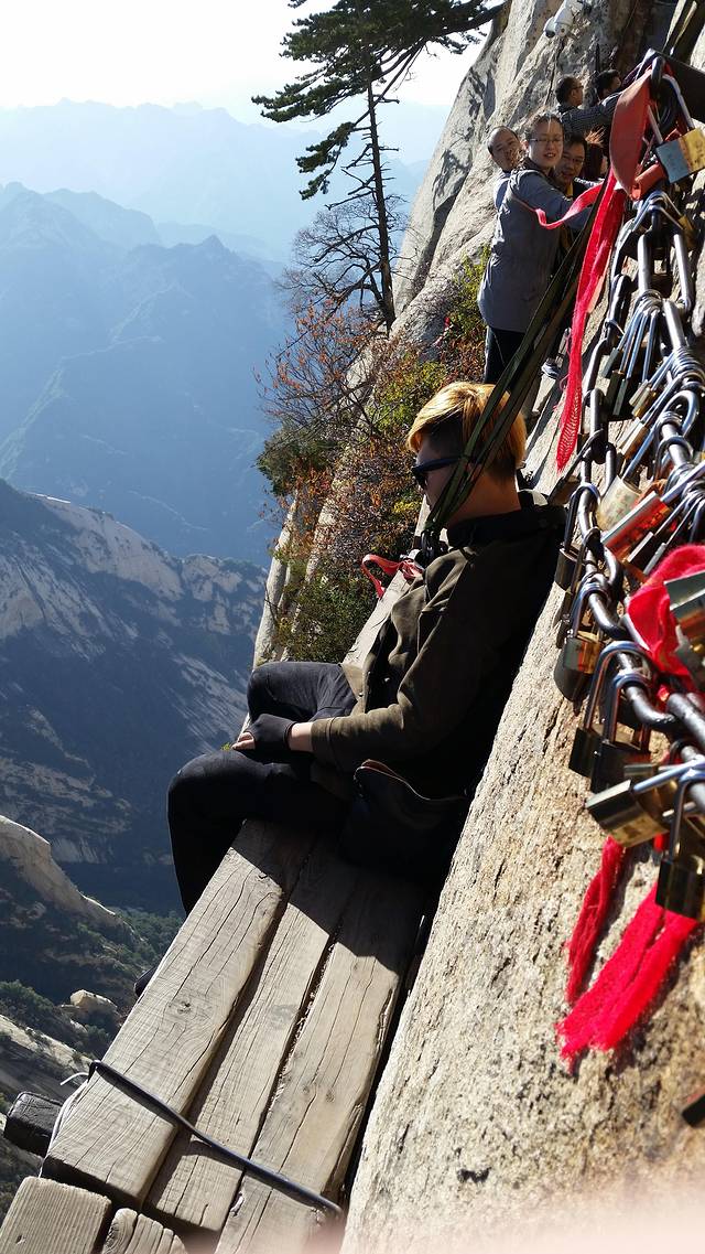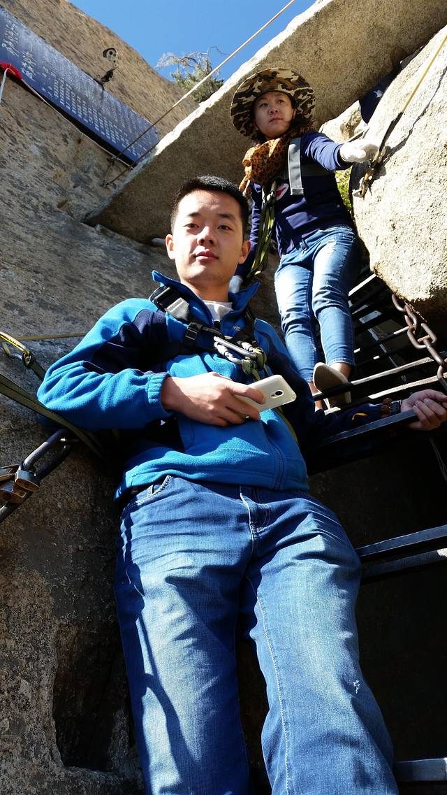 下午1时左右我们就到了北峰,至北峰顶拍照,猴哥去喝了杯北峰顶的咖啡,要了个免费的WIFI密码,稍作休整,我们过擦耳崖,现在游人增多,擦耳崖路基扩宽,确实没有了擦耳的感觉了。