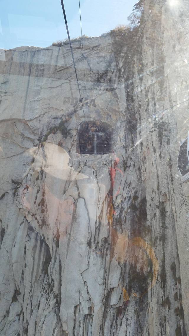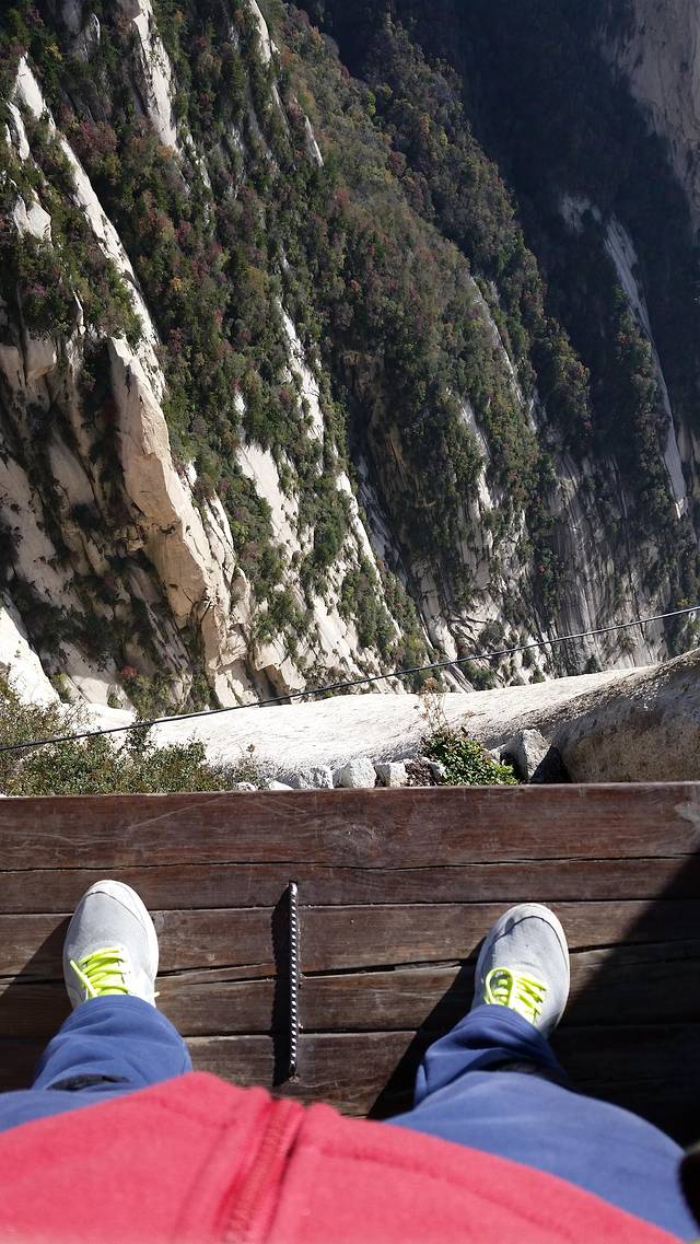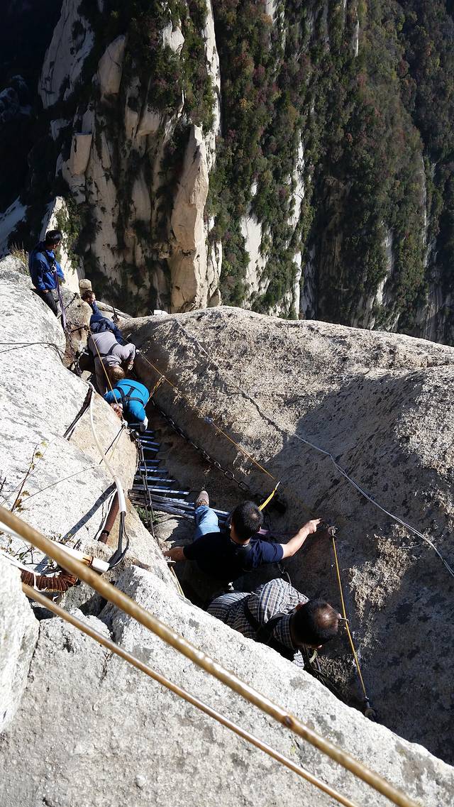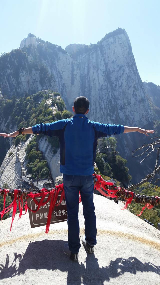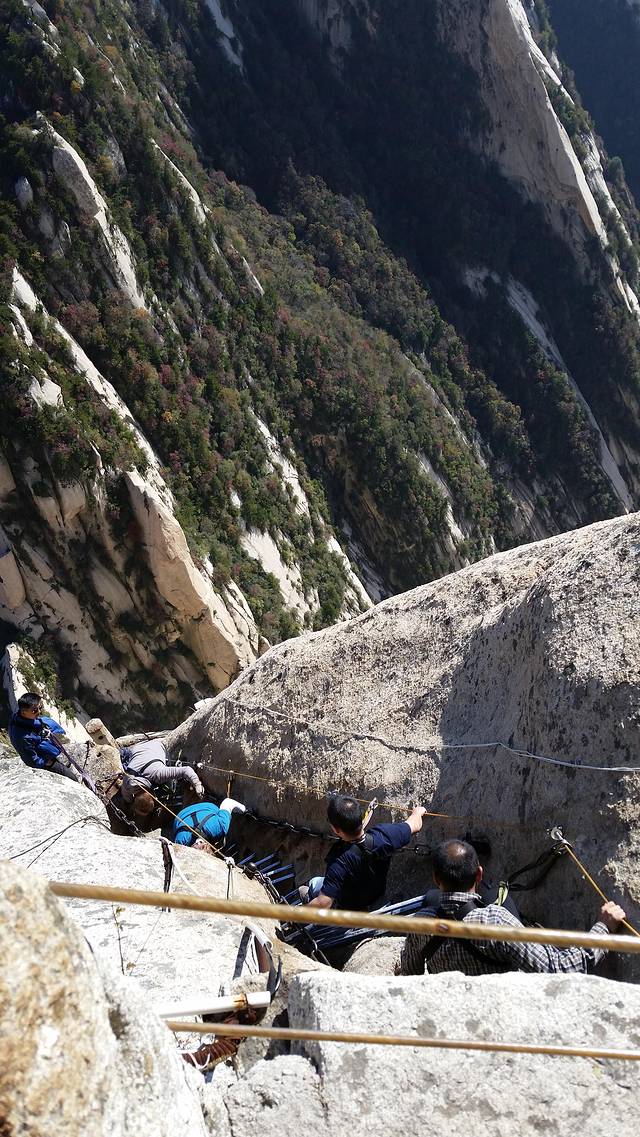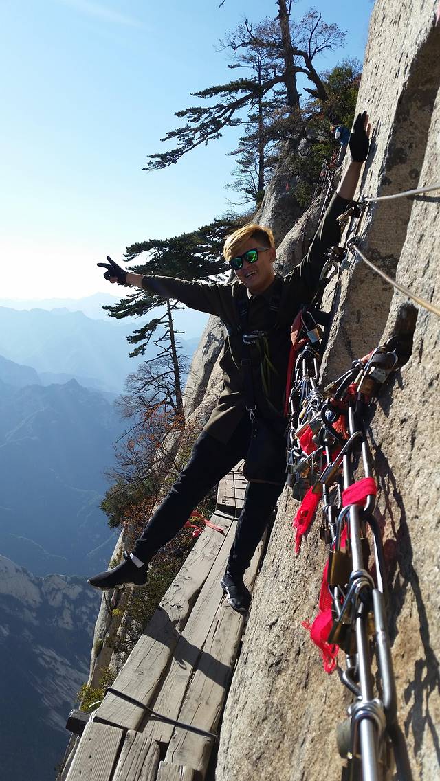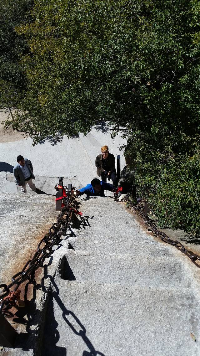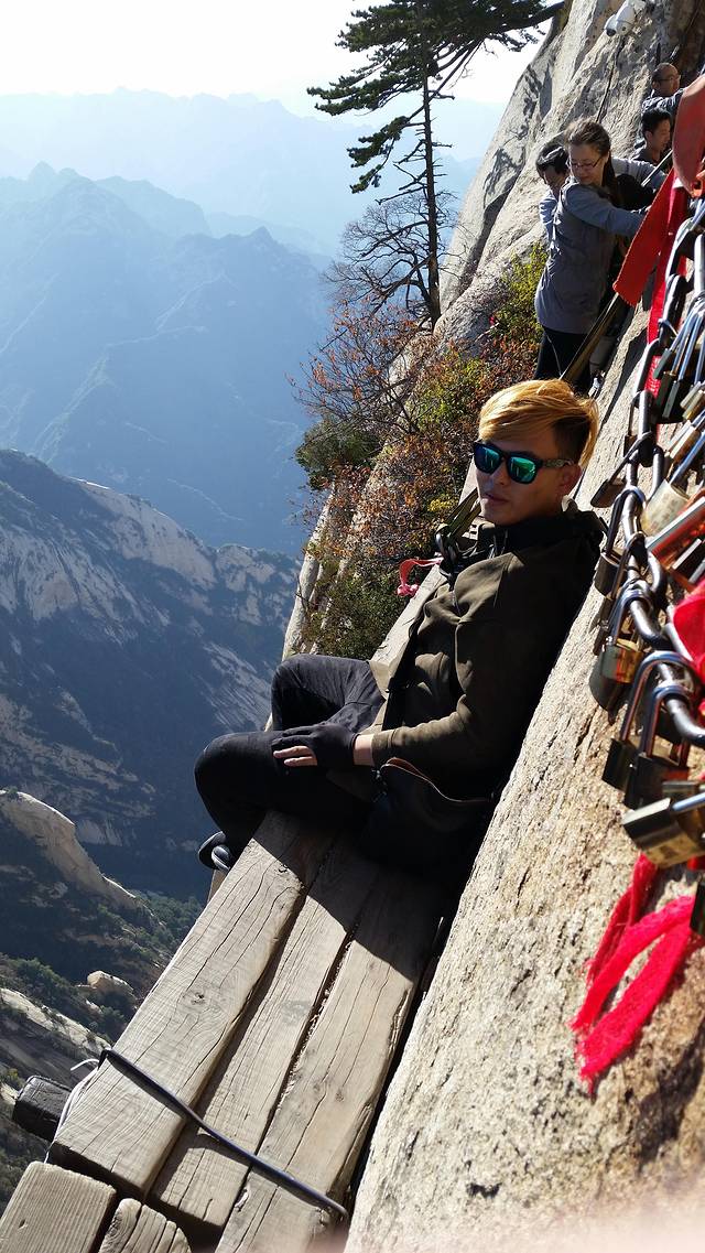 下午1时左右我们就到了北峰,至北峰顶拍照,猴哥去喝了杯北峰顶的咖啡,要了个免费的WIFI密码,稍作休整,我们过擦耳崖,现在游人增多,擦耳崖路基扩宽,确实没有了擦耳的感觉了。