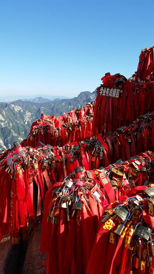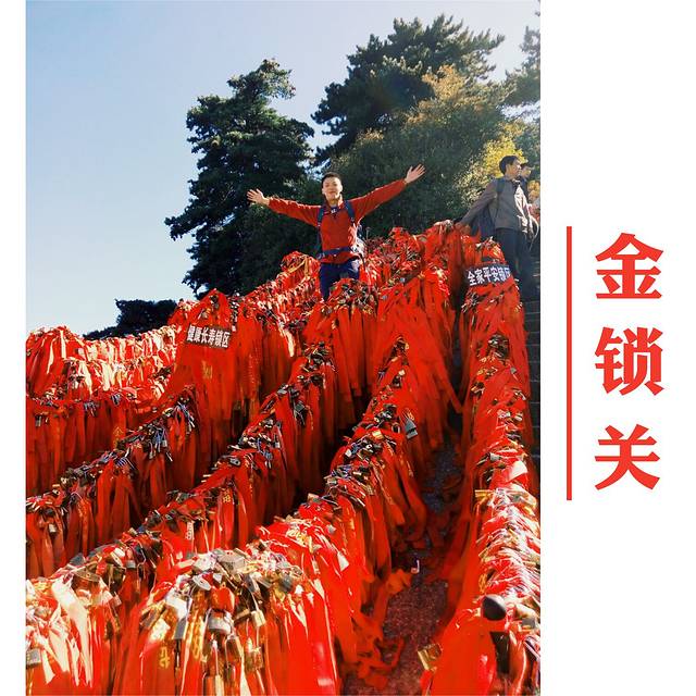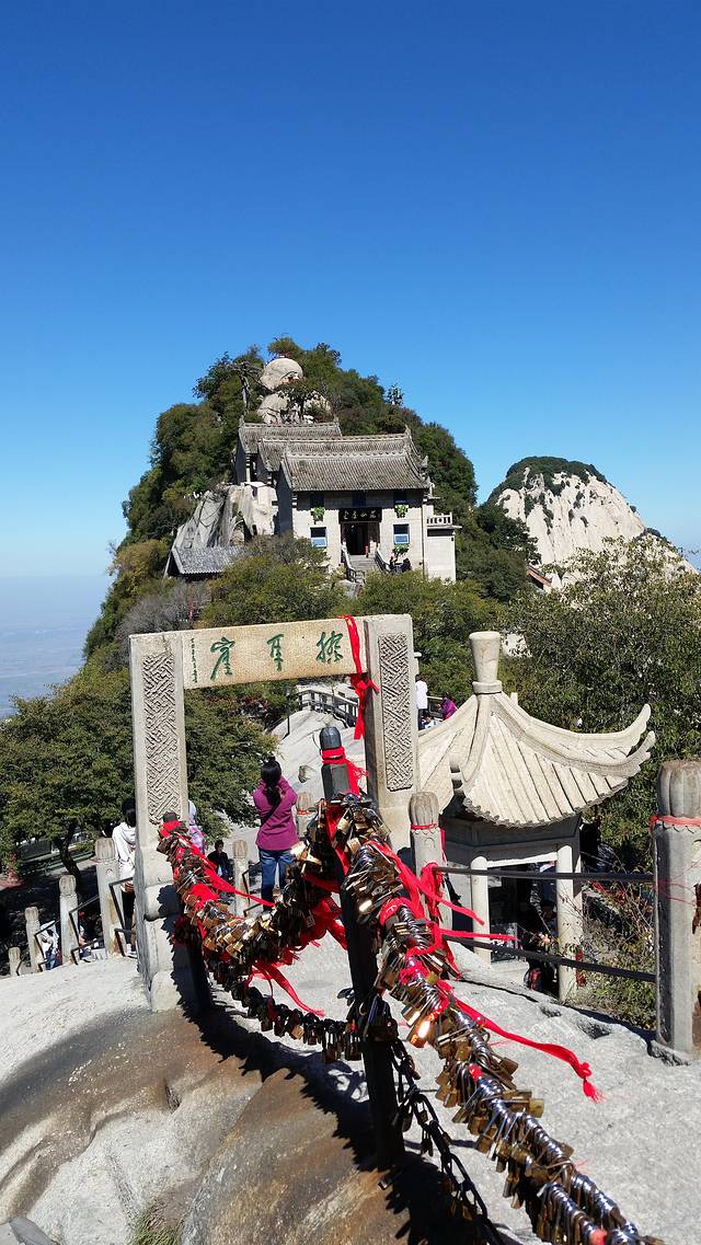 金锁关拍照很好看,锁死贵,但是拍照一定要小心,美照是建立在安全的前提下的,虽然华山扩到改建,但是一是游人众多,二是人都经过攀爬难免腿脚不听使唤,三是毕竟是凹凸不平的石路,脚上一溜就滑出去或者向后摔倒了,特别是在专心拍照时没注意到后面是悬崖,或者自己站在石阶上,我们就遇到一位边看手机边下石阶滑到,索性没摔伤,要是滑下去把下面的人摔伤,那就真是可气可恨,害人害己了。