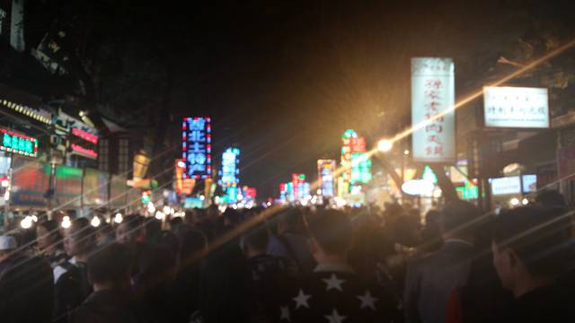 夜晚的西安格外的美丽,虽然历史遗迹原有的不多,很多是后面修复和仿建的,但红红的灯笼味道还是有的。原本我此行有两个文化要地要去,一是青曲社听相声,二是回民街看皮影,因为飞机晚点抵达兵马俑时玩得太累,我决定取消了青曲社的行程,因为我可能会听睡着的(这里说一下青曲社晚上8点多开始,到10点半结束,前排票价70,后排价格便宜以此类推,会送茶水,其他点心可以再点,咱重庆在沙坪坝有个逗乐坊,说回青曲社,就在青曲社隔条街有一个李记搅团,这是网上查的,听说比较出名,可美食这一样我钟爱素麻食)。既然行程去掉了青曲社,那就直接前往回民街看皮影喽。