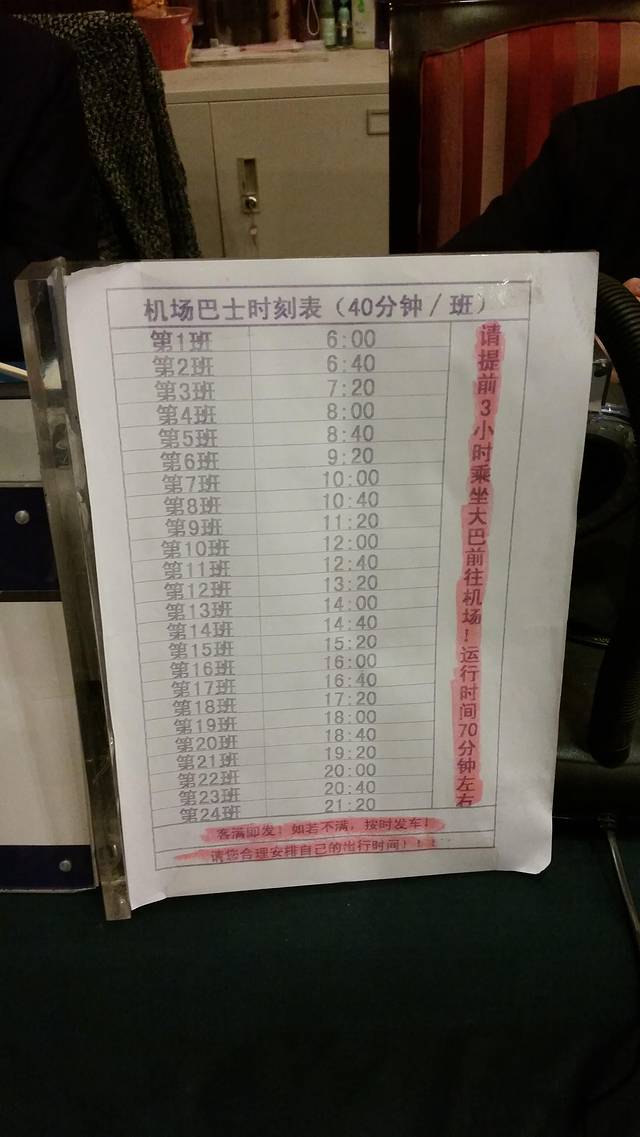 进小寨站,购买至南稍门的票,2元一位,中间只隔了一个体育场站,就到了,南稍门下站走西安宾馆(您要知道,所有的机场大巴都会给您下到某个宾馆门口,此时不要去坐钟楼的机场大巴,该站已经撤销),刚刚一班去机场的大巴已发出,门口又站着一个拉黑车的,他假装售票员,下一班马上就到,售票员上厕所了,在他那里等,小L信以为真,正准备过去,我头也不回的拉着他往宾馆里走,嘴里嚷着,我们上个厕所,出来再说。小L还一头雾水。进去一看,才知道购票在宾馆大堂拐角处,同样是25元一位。大家不要以为晚上9点过后还有车可以坐,下面会给大家一个二维码,你扫一下就能通过微信掌握机场大巴的时刻表了(同样返程也是大概在一个小时左右)。