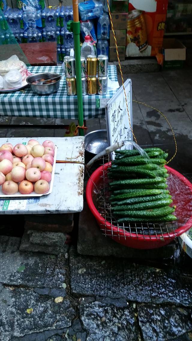 自带食品很重要。这里黄瓜还是10元三根,流水哗哗的冲刷着,方便面也就十五一碗,等过了百尺峡,千尺幢,苍龙岭,方便面可就是二十八一碗,一碗不多的米线就要二十了,饮料也是二三十一瓶,所以大家知道自带水瓶的重要了吧,但是在这些地方你买东西都不给你加热水的,除非你购买泡面,只有晚上到了住宿的旅馆才能续上热水。所以如果体力可以的话,可以在之前进行补给,自带三瓶功能型饮料应该就够了,其实鸡蛋,火腿肠是不二之选。你要知道最后我们花在吃喝上的费用真的是惊人的,你不要以为门票定了,房间定了,你就花不了什么钱了,吃喝在不知不知觉之中就把你的钱包挖空。